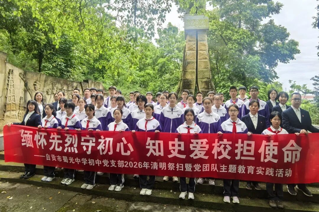 艺体招生丨自贡市蜀光中学2026年高中艺术、体育特长生招生公告 【蜀光食事】蜀光中学第七周食谱 【蜀光德育】踏春寻文脉 德育润成长——自贡市蜀光中学2026年春假德育实践活动回顾 梧桐茂・凤栖枝 | 蜀光中学高2026级物理教师天团 学校概述 蜀光党委 蜀光行政 教学教研 招生信息 百年校庆 我和我的蜀光全球征集活动 德艺体卫 校园新闻 【蜀光温度】春风送暖生辰乐 同心共筑蜀光情——自贡市蜀光中学工会举办2026年1—3月教职工集体生日会03-31 喜报!我校退休教师骆嘉彬作品入选部级摄影展02-24 西安交大发来喜报!祝贺我校4名毕业学子获得多项奖学金01-07 【蜀光温度】公能聚力,温暖同行——自贡市蜀光中学工会举办2025年11—12月教职工集体生日会12-26 【蜀光温度】爱心铸生命——蜀光中学举行无偿献血活动11-18 蜀光校友 德育活动 足体风采 后勤服务 蜀光党委 【蜀光党建】缅怀先烈守初心 知史爱校担使命 【蜀光党建】匠心传承非遗技艺 党建引领赋能振兴 【蜀光党建】党建引领筑根基 融学于行践初心 【蜀光党建】赓续红色血脉 砥砺初心前行——自贡市蜀光中学开展2026年清明祭扫暨党团队主题教育实践活动 【蜀光党建】赓续红色血脉 勇担育人使命 【蜀光党建】从严从实强党性 凝心聚力开新篇 【蜀光党建】党建引领聚合力 书香传情践初心——自贡市蜀光中学初中党支部开展社区志愿服务主题实践活动 党团携手添新绿 共育桃李满园春——自贡市蜀光中学行政党支部开展植树节主题党日活动 蜀光行政 【蜀光会议】提升宣传质效 筑牢宣传阵地——自贡市蜀光中学召开2026年度新闻宣传工作会议 百日追光·绽放青春 | 蜀光中学大思政课开讲 “感动中国人物”刘伟以生命力量砺志高三学子 【蜀光温度】致敬平凡而伟大的“她”——自贡市蜀光中学2026年“三八”国际妇女节主题实践活动倡议书 【蜀光会议】乘势而上担使命 深耕细作提质量——蜀光中学召开2026年春季学期开学教职工大会 【检查指导】市教育体育局副局长刘自山带队检查指导自贡市蜀光中学开学准备工作 教学教研 梧桐茂・凤栖枝 | 蜀光中学高2026级物理教师天团 梧桐茂・凤栖枝 | 蜀光中学高 2026级英语教师天团 【师德师风丨我身边的好老师】万仪:初心育桃李 匠心守杏坛 遇见·良师丨蜀光中学初 2026 级英语教师团队 【蜀光荣耀】AI赋能促教学 以赛砺师展风采——我校教师在全市初中化学教师科学素养比赛喜获佳绩 招生信息 艺体招生丨自贡市蜀光中学2026年高中艺术、体育特长生招生公告 双营并启 共探未来——2026年电子科大蜀光基地、成七·蜀光冬令营同步开营 【拔尖创新·筑梦未来】2026电子科大蜀光基地冬令营 自贡市蜀光中学苓班介绍 自贡市蜀光中学2025年艺术特长生专业测试合格名单公示 德艺体卫 【蜀光德育】踏春寻文脉 德育润成长——自贡市蜀光中学2026年春假德育实践活动回顾 【蜀光德育】龙马精神承文脉 以美润心赴新程——自贡市蜀光中学2026年德育实践成果展示 【转载】蜀光中学初中男足晋级“贡嘎杯”四强创历史最佳 【蜀光荣耀】11金6银3铜!破4项纪录!蜀光中学勇夺自贡市中小学生田径锦标赛高中团体总分第一名! 【初2024级印记】以手绘史品初心 以行演史悟精神——初2024级寒假历史作业展
